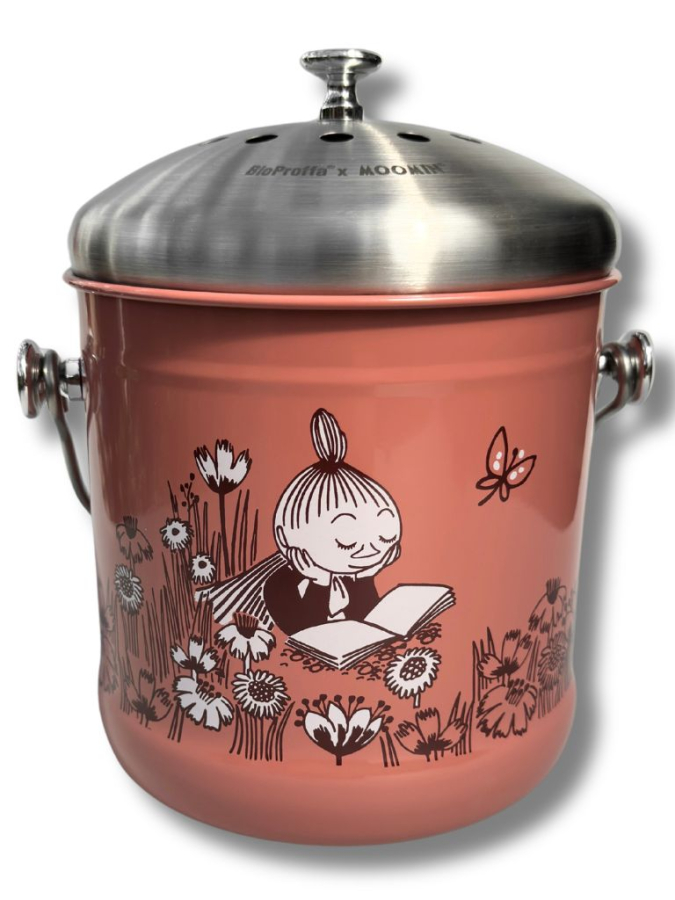 Mumins hink för matuppsamling blir en otroligt vacker inredningsdetalj i ditt kök. Det är tillverkad av rostfritt stål, har en innerhink med praktiskt handtag som går bra att diska i maskin. Locket är tätt mot fruktfrugor och har två kolfilter som förhindrar dålig lukt.